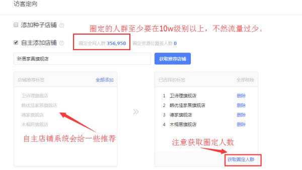 种子店铺——通过输入的种子店铺,系统为你推荐与该店铺相似风格的相关店铺的访客进行定向,建议填写1个;