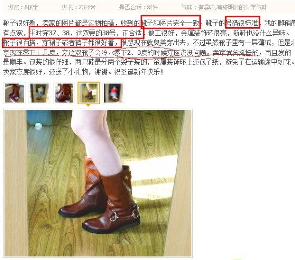 第二张的这位是我们的学员,他们家店铺这款靴子0销量起步,前期一天1-2单,后期正式因为有了这样给力的评价之后每天销量增加到了8-10单,非常给力的评价,就像给消费者吃了一颗定心丸。