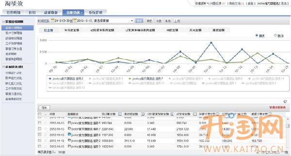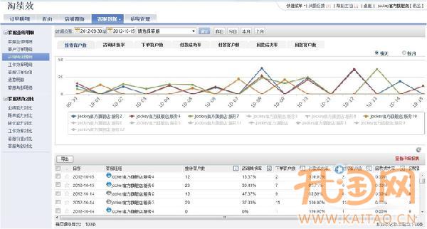 下图是利用淘绩效,对客服的销售情况、接单情况进行自定义的查询,并可以将不同店铺、不同客服进行自定义数据对比。
