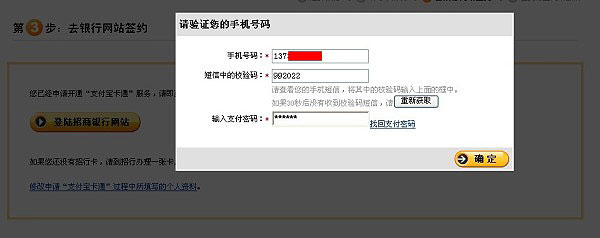 4、绑定好手机后点登录招商银行网站:进行招商银行直付通的协议签约