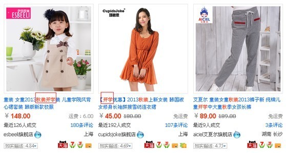 每年的9月1日是开学日,低年级的孩子们少不了书包、文具、运动鞋,高年级的大同学则需要各种电脑手机数码产品,以及适合宿舍生活使用的简易衣柜鞋架等生活用品。这时,这些产品无疑是受人欢迎的。“开学礼物”、“衣柜宿舍”等关键词能大展身手,带来不少搜索流量。当然,服装也一样。秋季即将来临,也正值开学之际,服装产品的关键词加上“开学”、“开学优惠”、“学生”等字眼,在淘宝首页的自主搜索流量必然会上升。