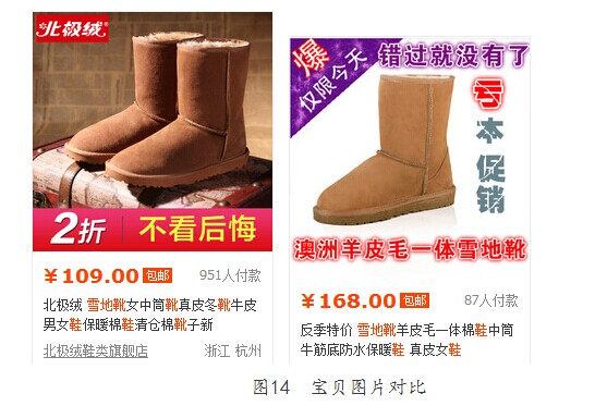 上面两个图虽然都是同一款产品,但图片效果相差还是很大的,第一张图片的版型较为正规,有质感,后一张图片则看着比较山寨。这就要考验美工的功底了。