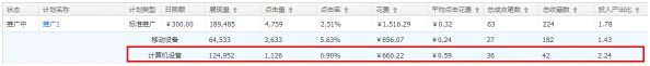 3)单独开启无线投放后,观察直通车报表、流量来源、分析无线站内外数据情况,可选择性地关闭数据反馈产的流量入口进行设备单独投放。