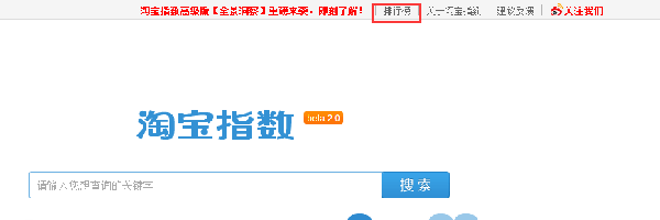每个宝贝都有独特的关键词,我们可以利用各种软件来查找热门的关键词并筛选一部分出来,而很多人都会忽略了淘宝指数,那么今天就使用淘宝指数来查找关键词吧。图1当我们进入到淘宝指数页面,在右上角会看见排行榜。