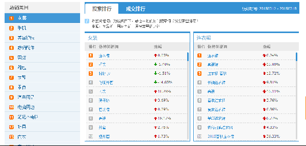 点击进去后,你会看见很多类目,以女装为例吧,图2 我们可以看到数据统计是一周为单位的。