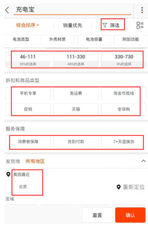1.手机淘宝有设置一个筛选的功能,顾客可以根据自己的要求要筛选出自己想要的产品。