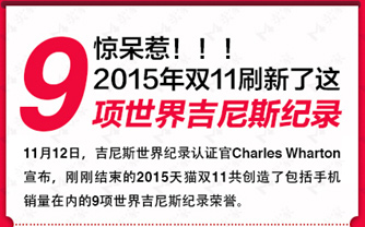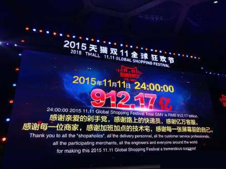 1、最惊人数据:912亿2015年双11当日,合计数据,包括天猫、京东、苏宁、亚马逊、当当、1号店等全网销售战绩金额总共1229.37亿元。在这里面,天猫无疑是最大的赢家,截至11月11日24:00,天猫创下来912亿的销售额,金额占全网的74%,相比去年的70.9%提升了3%。