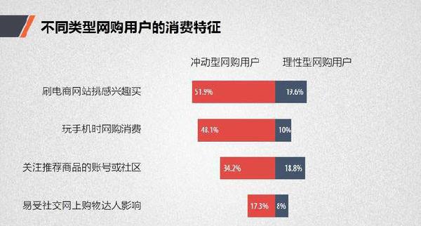 对冲动型网购者而言 , 他们也更多关注那些推荐商品的社交账号和社区 , 且易受社交网上的购物达人影响。