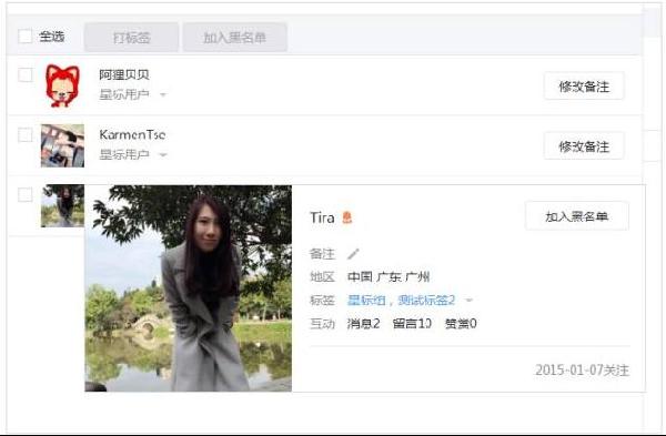 2. 优化用户卡片,支持多场景查看用户头像大图与互动数据,增强运营者对用户熟悉度与管理效率