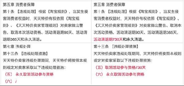 《天天特价管理规范》规则变更,将于2016年6月14日生效。为给更多卖家提供参与天天特价活动的机会,为消费者营造安全安心的网购环境,提升消费者的购买信心和满意度,淘宝网将对《天天特价管理规范》做优化调整。主要变更点如下: