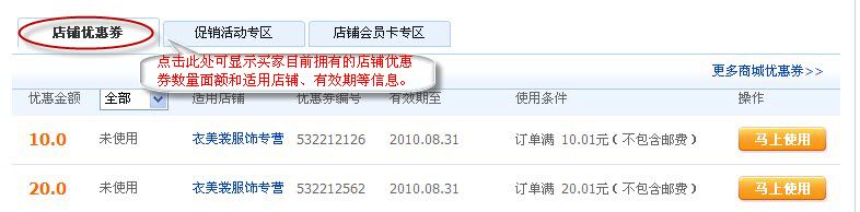 4)、如果卖家设置店铺优惠券使用条件,必须在订单金额满足条件后方能使用。订单金额不包括运费。