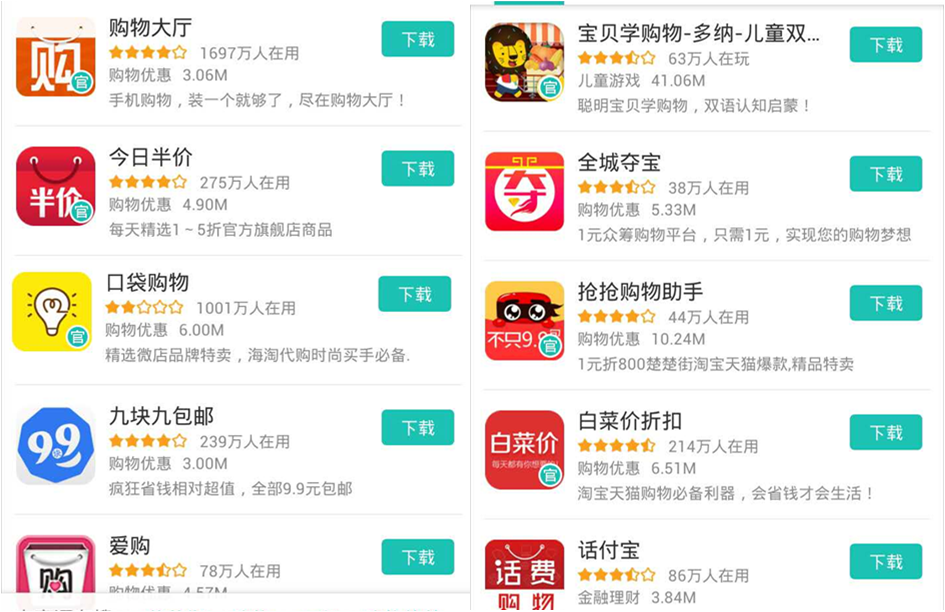 ?在各大手机APP应用市场 选择购物分类或者搜索购物关键词