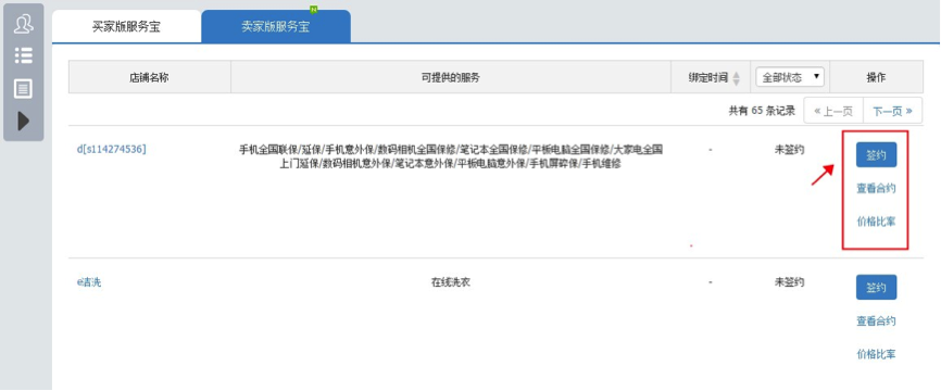 对该服务商有意向就可以点击【签约】按钮