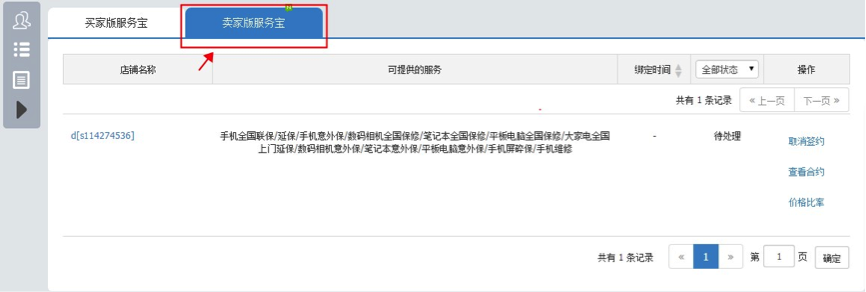 A. 当签约完成后,再选择具体商品和服务的绑定,点击左侧菜单中的「服务管理」;