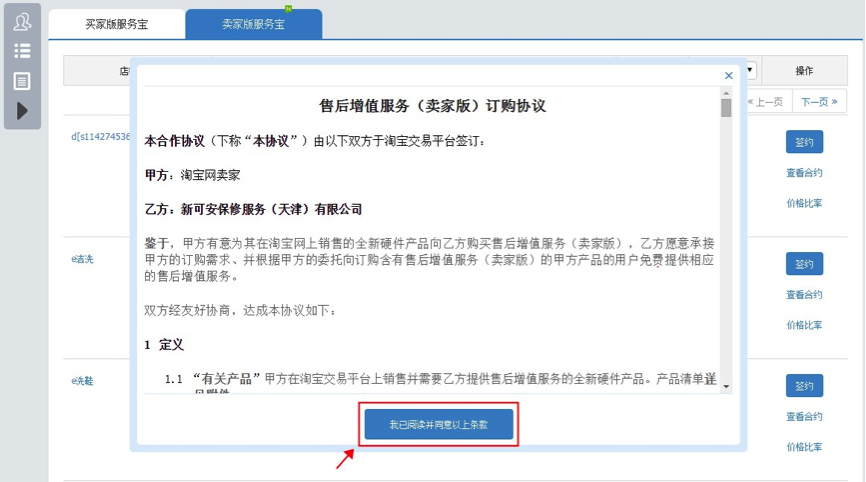B、点击【签约】按钮后,查询具体的协议内容,点击同意条款;