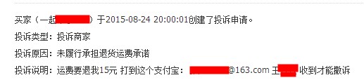 关于乞丐地址,说你的衣服发错了,《其实2个ID拍下后分开隔一段时间来要邮费》,或者说你的衣服有问题,质量问题,小号,而且上来简单清晰,直接一张图片,有问题问你怎么办,寄来后,直接清晰明了你好 我退货的邮费15元要退给我的哦支付宝是账户名:不给就投诉。