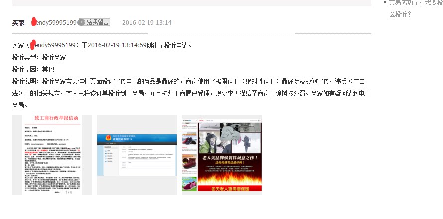 点开看商家中心 看到投诉 点进去看吓一跳 我们家也被骗子用新广告法的极限词投诉了 马上查看详情页更改 按很多帖子里面说的在图片空间替换图片 交易快照会一起更新 但是好像并没有什么用 昨天在喵言喵语里面看 还有一家店铺和我们一样 被同一个人投诉极限词了 不想吐槽中国的法律了 真是无语醉人 只想说以后都不用词语 用拼音 让顾客自己去拼吧 骗子投诉 没有声调在上面 也没办法肯定说是什么字 都去当骗子好了 钱可真好赚 付个款 退款了 就可以投诉了 只要不怕有报应 一个20岁年轻人的吐槽 求大神告诉接下来应该怎么办